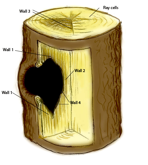 Trees react to injury in an ordered and predictable way. They block or slow the spread of decay through setting up a series of four walls that are made by modifying wood cells, chemically or physiologically.